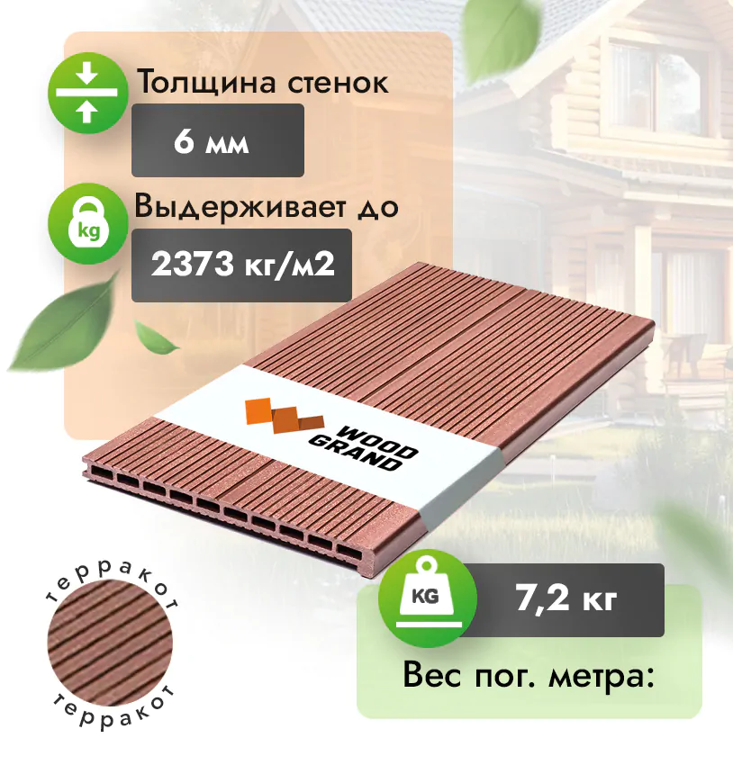 • Безупречное качество изделий, террасная ступень из ДПК соответствует ГОСТу Р 59555-2021.
