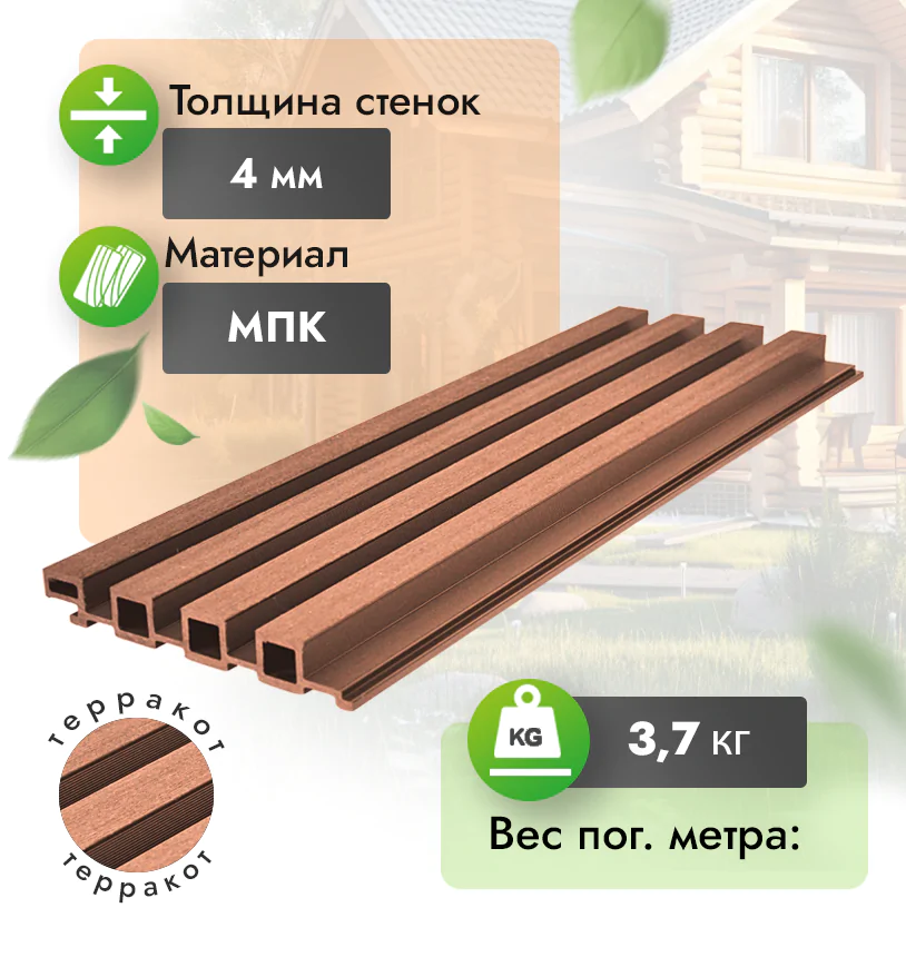Мы производим ступени из ДПК в размере 320x22 мм пустотелый профиль.